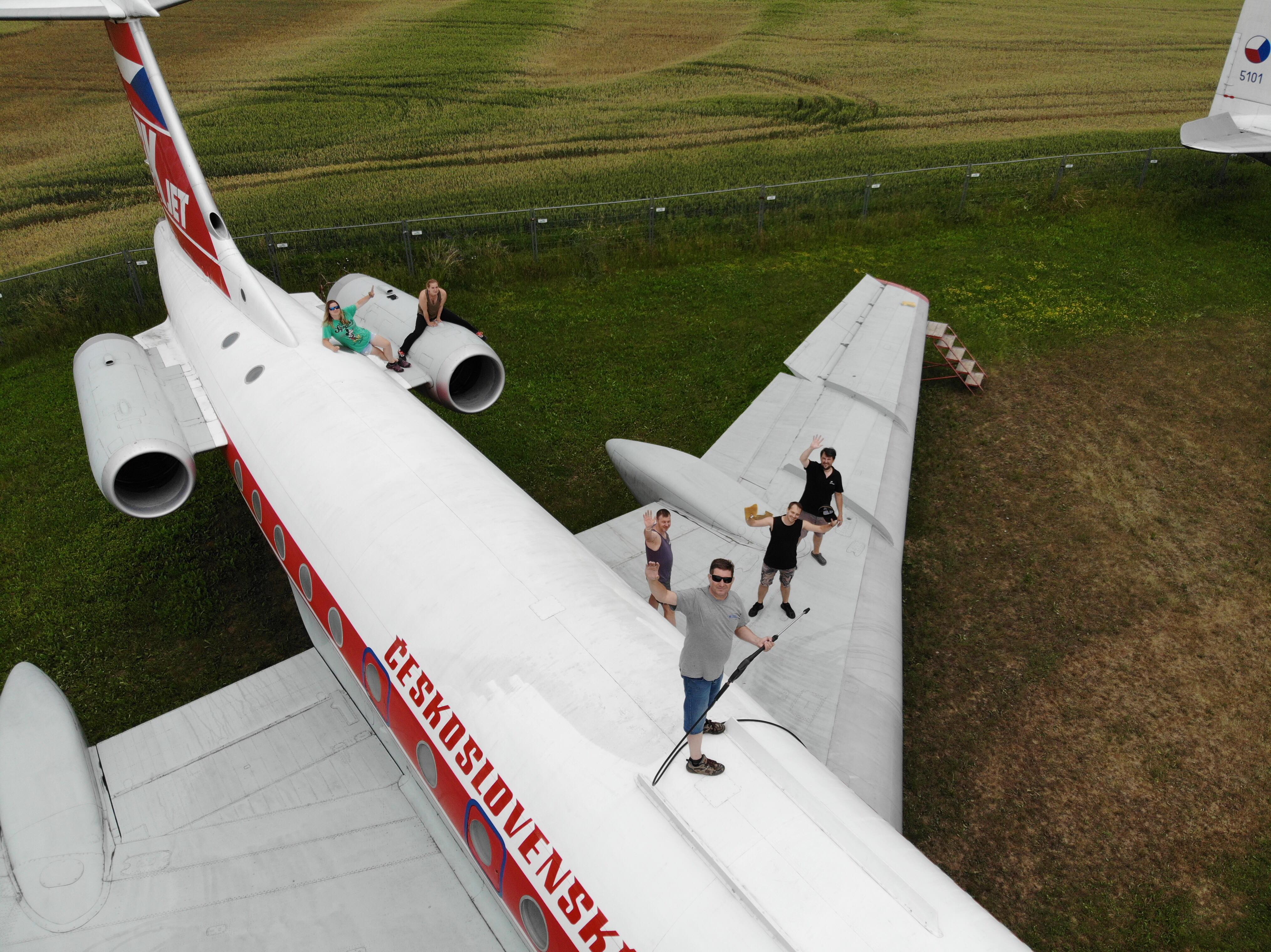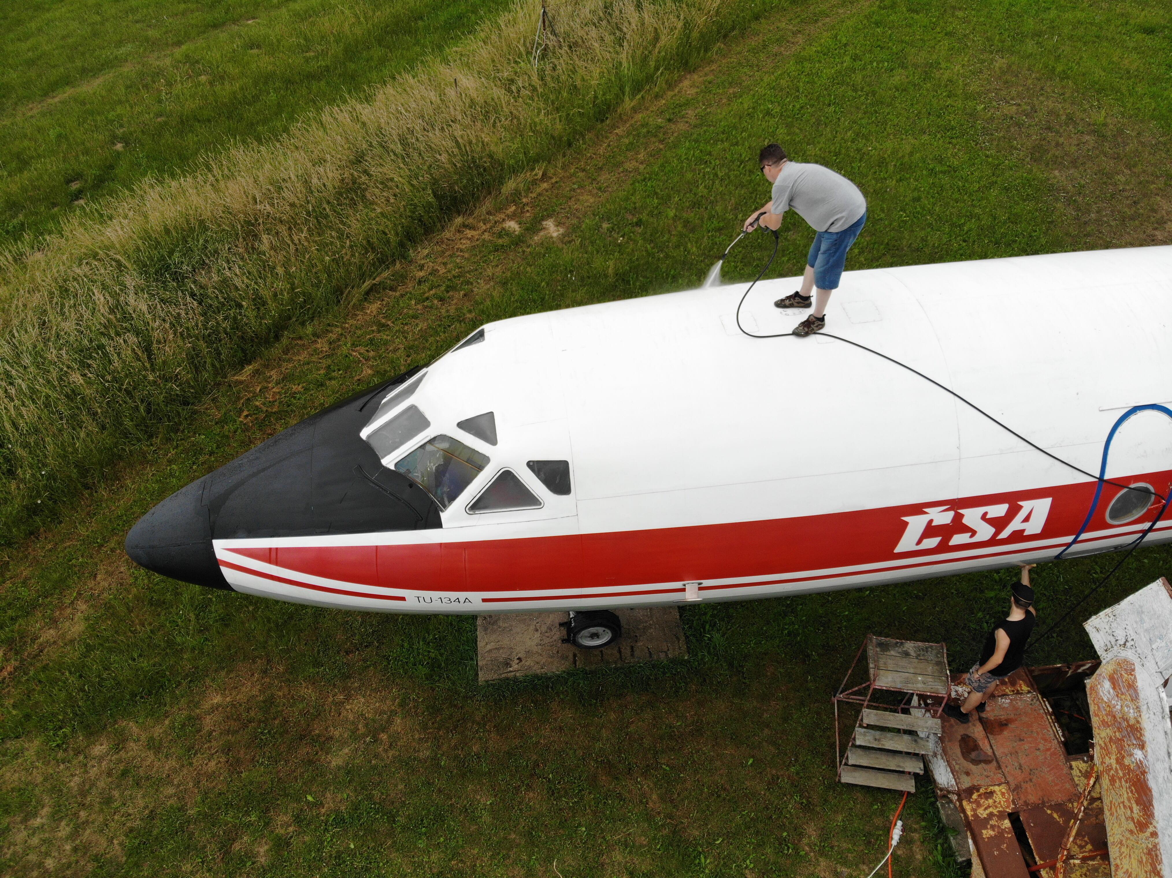 TU134A dostal nový náter a od toho momentu sa stal dominantou celého leteckého múzea v Slávnici. Lenže na krásu a trvanlivosť laku a farieb sa podpisuje čas aj počasie, je potrebné sa o túto krásku starať. Každý dopravný prostriedok ak chce byť príťažlivý, potrebuje aj údržbu čistením.