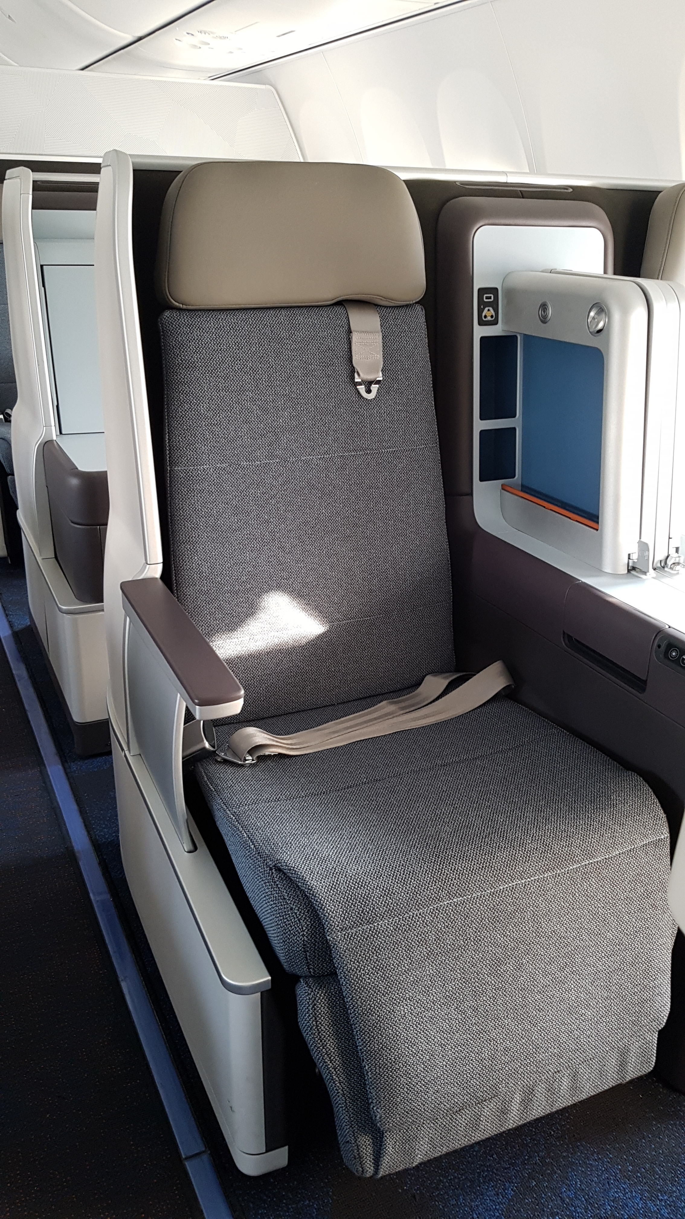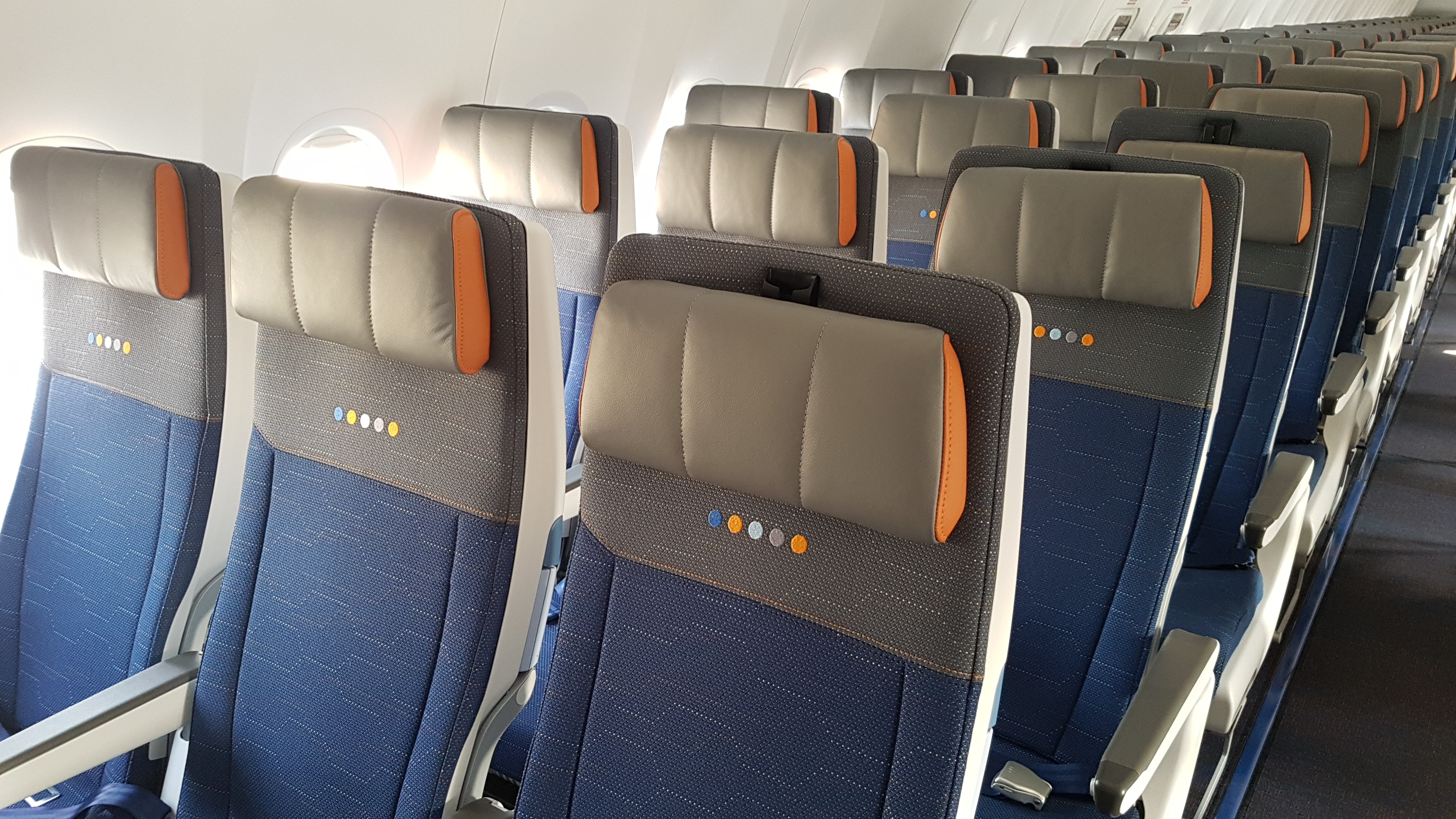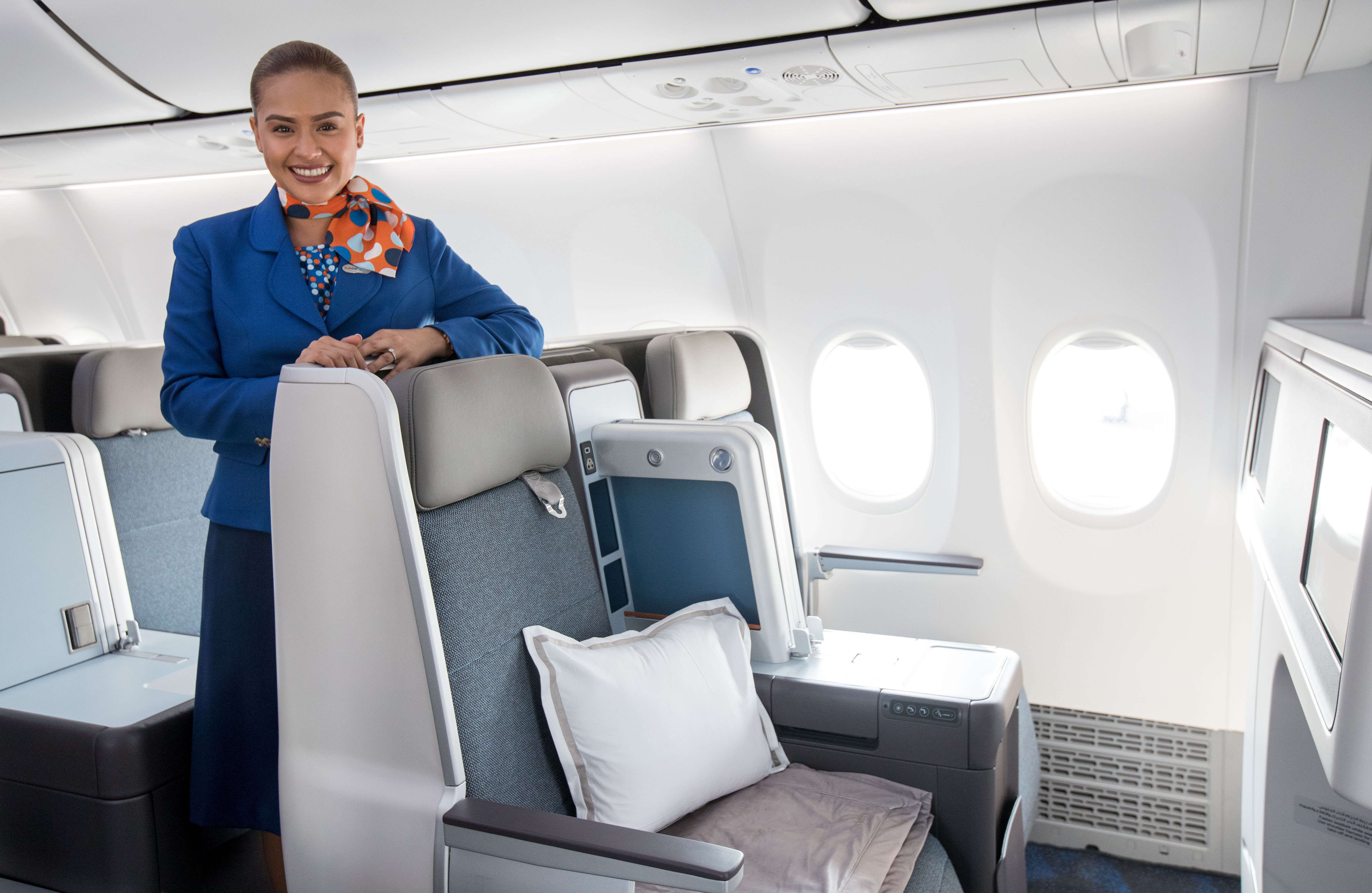 To, čo cestujúcich zaujme hneď na prvom mieste je nové vnútorné vybavenie. Prešlo úplnou obmenou. 10 sedadiel obchodnej triedy je v konfigurácii 2 rady 2-2 a 1 rad 1-1. Nové full-flat sedadlá poskytujú vysokú dávku komfortu a hlavne súkromia, čo je skôr doménou wide-body lietadiel.
