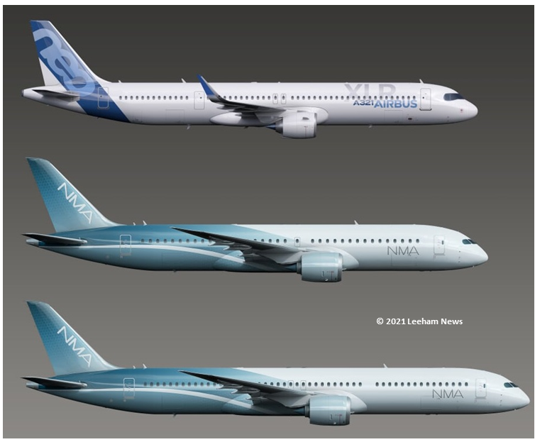 Pri Boeingu ešte zostaneme. Výrobca začal svojim dodávateľom posielať “predbežné žiadosti o informácie” týkajúce sa návrhu nového typu komerčného lietadla s označením -5X. Koncept -5X reaguje na úspech typu A321XLR, ktorý pri konfigurácii 180-220 miest pre pasažierov a dolete 8,700 kilometrov konkuruje väčším diaľkovým dopravným lietadlám, avšak pri nižších prevádzkových nákladoch. Typ A321XLR počíta od svojho predstavenia na parížskych leteckých dňoch v júni 2019 približne 450 objednávok.