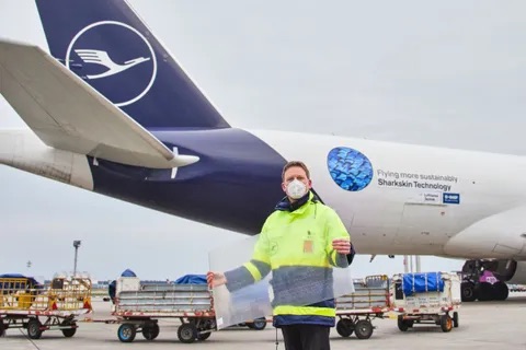 Boeing 777-300ER registrácie D-ALFA spoločnosti Lufthansa Cargo je prvým z flotily nákladných B777, ktoré budú testovať úsporu paliva v bežnej prevádzke – a to vďaka technológii AeroSHARK. Inauguračný let pod označením LH8410 vypravený v piatok ráno viedol z domovského Frankfurtu do Bengaluru a následne do Chengdu. Modifikácia povrchu vytvorená spoluprácou Lufthansa Technik a BASF sľubuje 1% úspory paliva, čo pri využití technológie na celej flotile v Lufthansa Cargo odhaduje ročnú úsporu 4000 metrických ton kerozínu a 13 tisíc metrických ton CO2, a je ekvivalentom 53 priamych letov medzi Frankfurtom a Šanghajom.