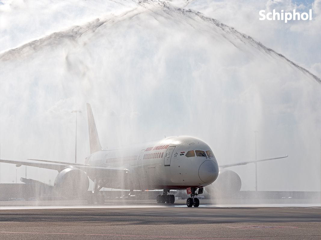 Amsterdamské letisko Schiphol sa stalo ôsmou destináciou v Európe, kam indická letecká spoločnosť Air India lieta. Boeing 787-8 Dreamliner lieta na linke Dilií – Amsterdam štyri krát do týždňa, vždy v pondelok, stredu, piatok a nedeľu. Dreamliner je v konfigurácii 18 miest v obchodnej a 238 miest v ekonomickej triede. Odlet z Dilií je o 13:10 a prílet do Amsterdamu o 18:35. Odlet späť je to 20:45 s príletom do Dilií o 08:10.